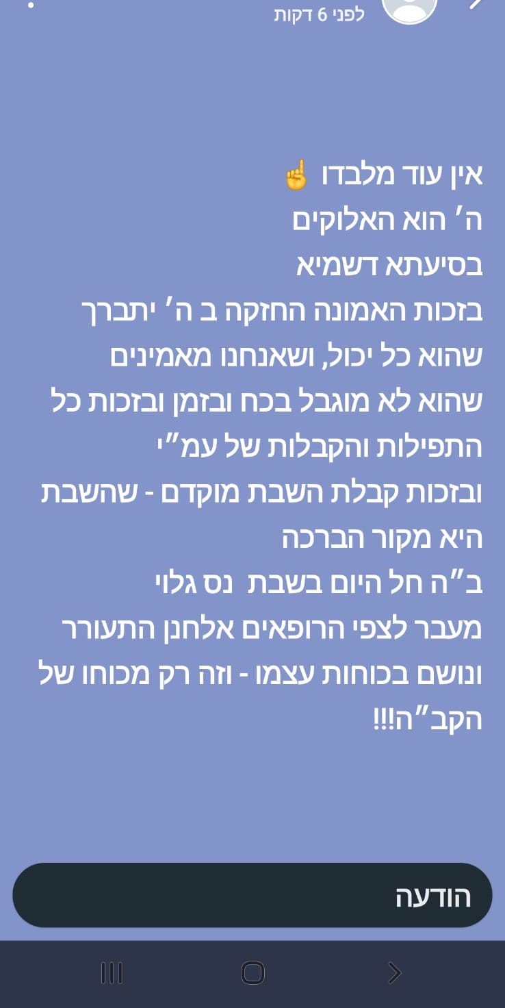 תודה לכולם על כל התפילות תמשיכו להתפלל עליו הוא עדיין זקוק לרחמי שמיים
