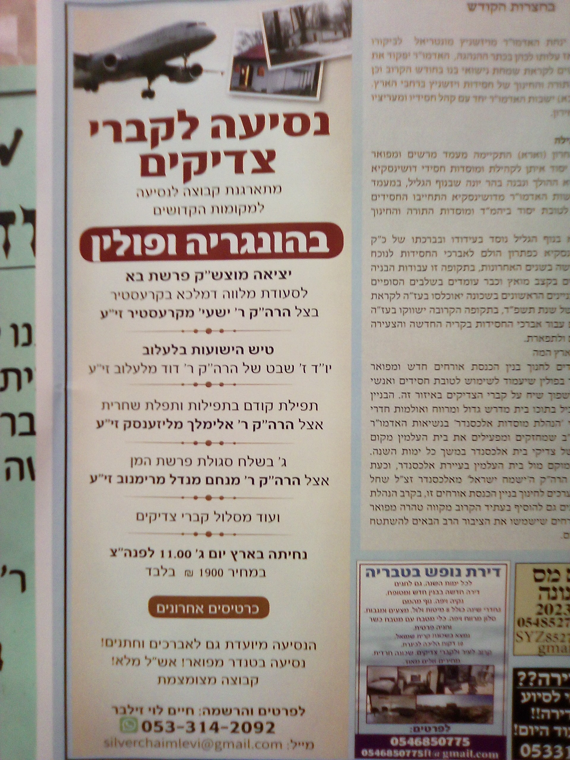 דרוש מידע טיסה לקברי צדיקים בחול לכמה ימים