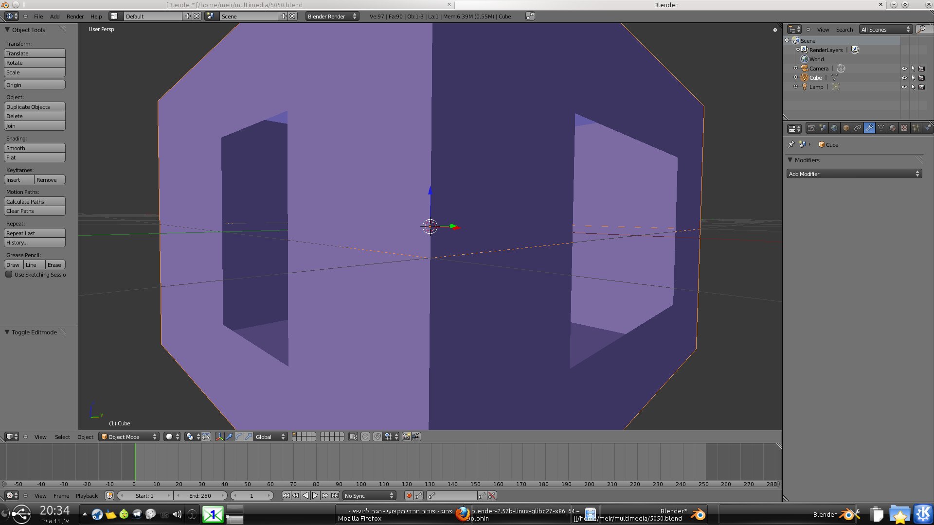 6. לחיצה על הלחצן האמצעי בעכבר + shift יזיז את כל המשטח עבודה לאיזה כוון שתיקחו אותו
