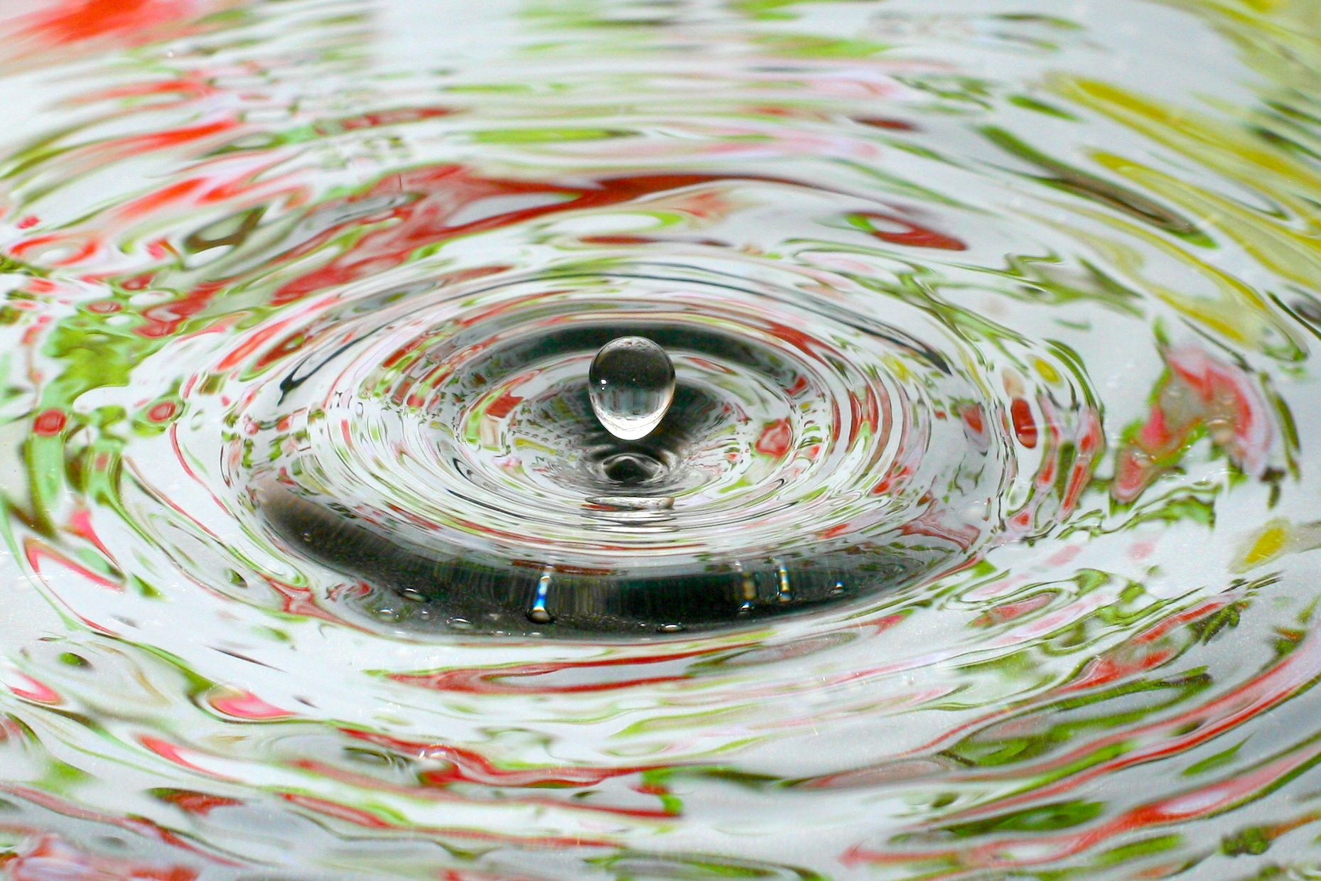 סיפור די מסובך, קערה שחורה עם מים בעומק של כ5 ס''מ עם פלאש מהצד שמאיר רקע צבעוני שמשתקף במים, 'מנגנון טיפטוף' מלעלה בגובה מספיק כדי ליצור הקפצה של המים וכו'