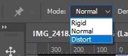 עוד אפשרות מעניינת בפוטושופ שלא קיימת באילוסטרייטור היא לשנות עם הכלי את שיטת העיוות בתפריט Mode ל Distort בשיטה זו האובייקט יעוות באופן מוגזם ופחות טבעי מה שיאפשר לנו להגיע לתוצאות מעניינות ואפילו משעשעות בעת עיוות של אנשים ועצמים. מעין קריקטורה של הצילום המקורי.