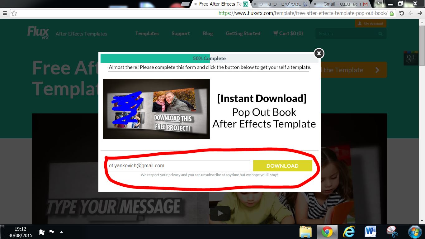 אם הכנסת מייל הקישור להורדה מגיע לשם