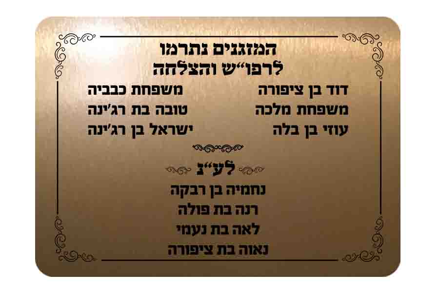 שלטים ממתכת כסופה או זהב להנצחה כהוקרה על תרומות מזגנים וכדו'