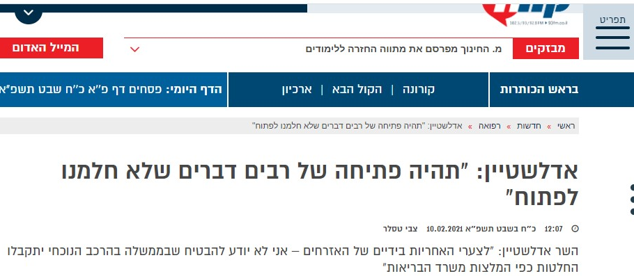 לפי לשון הדיווח: "במשרד הבריאות רוצים לאסור התקהלויות ומסיבות המוניות, כמו גם את העלייה המסורתית לקברו של רבי שמעון בר יוחאי – שככל הנראה תיאסר מיום חמישי שיחול בו החג ועד למוצאי השבת שאחרי. על מנת לאכוף את ההגבלות הללו, יוצבו מחסומים משטרתיים".