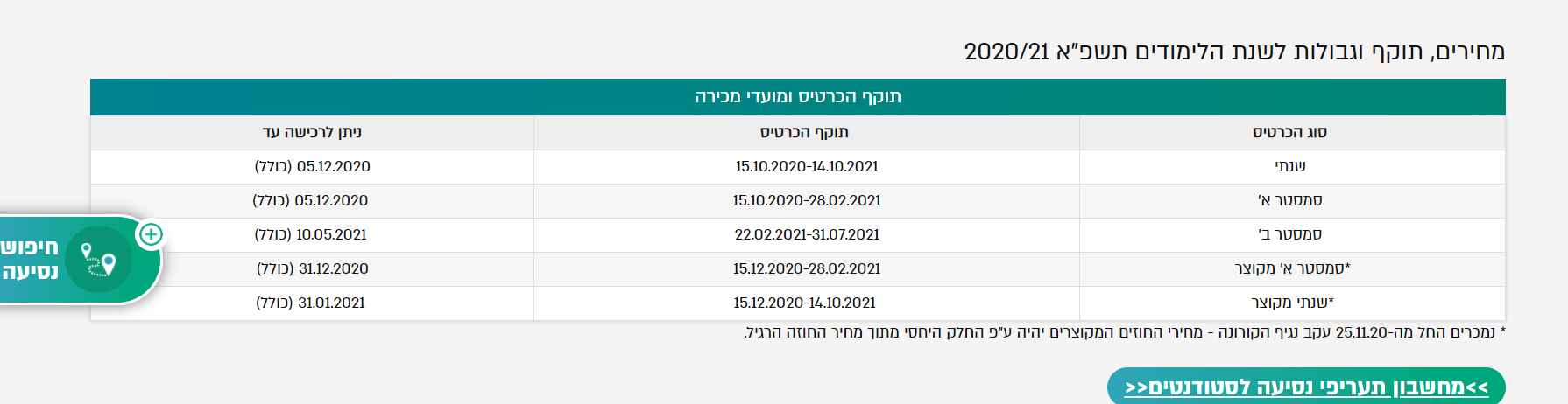 פיצוי לנוסעים שהיה ברשותם חוזה חופשי חודשי, שנתי או סמסטריאלי במהלך המבצע​