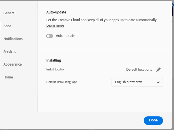 האם Creative Cloud אצלכם מוגדר לעברית?