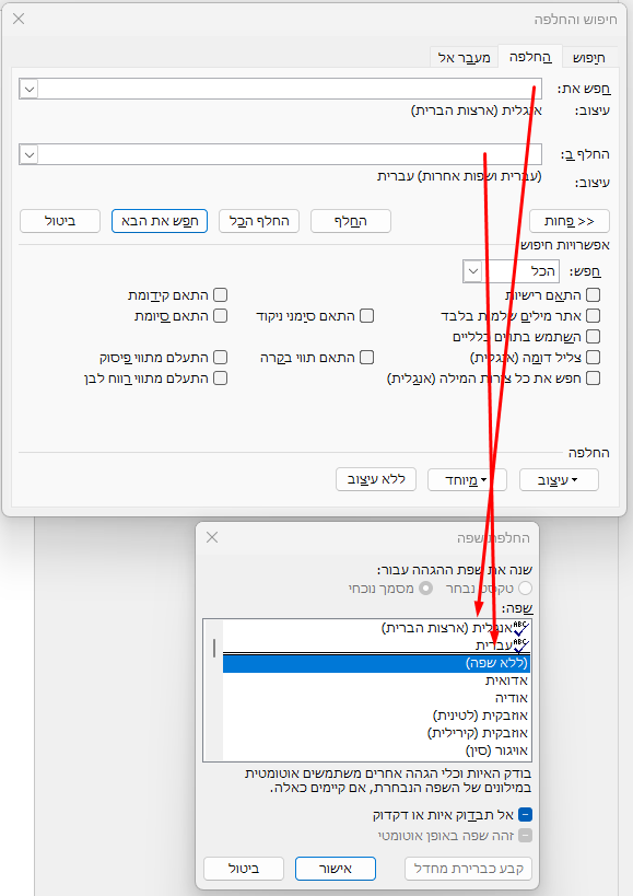 קובץ וורד שהחומר שבו כביכול "התהפך" לאנגלית,