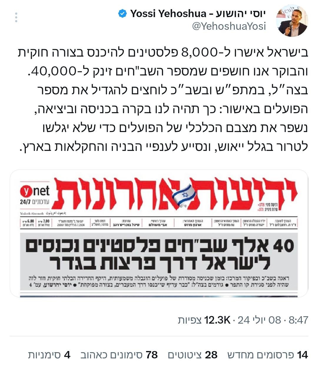 ושוב לא בהאשמה ולא בטרוניה אלא כנתון מציאותי