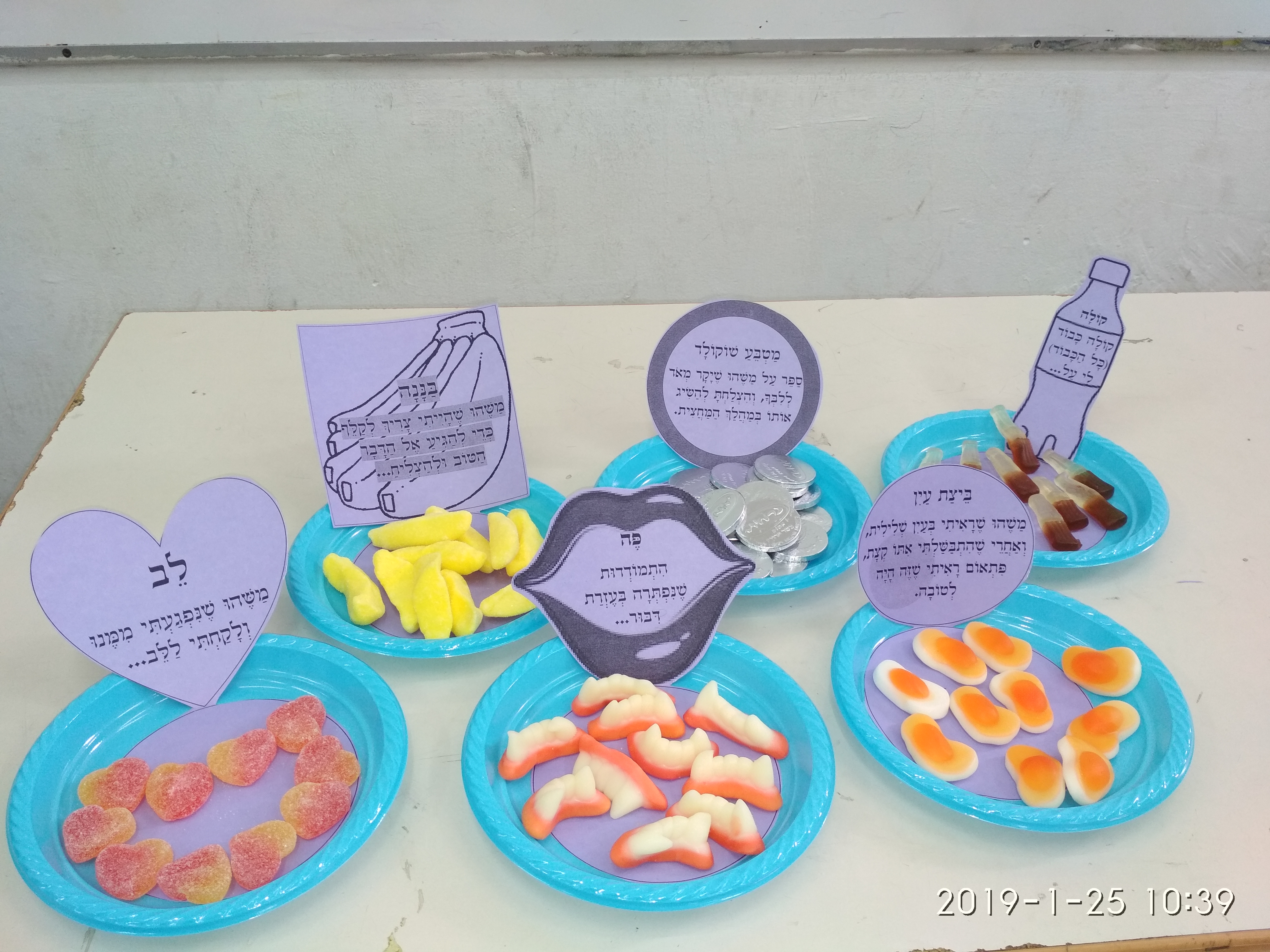 3. קוטפים את פירות ההצלחה- תולים פירות על חוט לאורך הכיתה וכל בת קוטפת בתורה ואומרת- במה גדלה השנה? ( פירות זאזא כן? פירות אמיתיים עלולים ליפול עליהן)