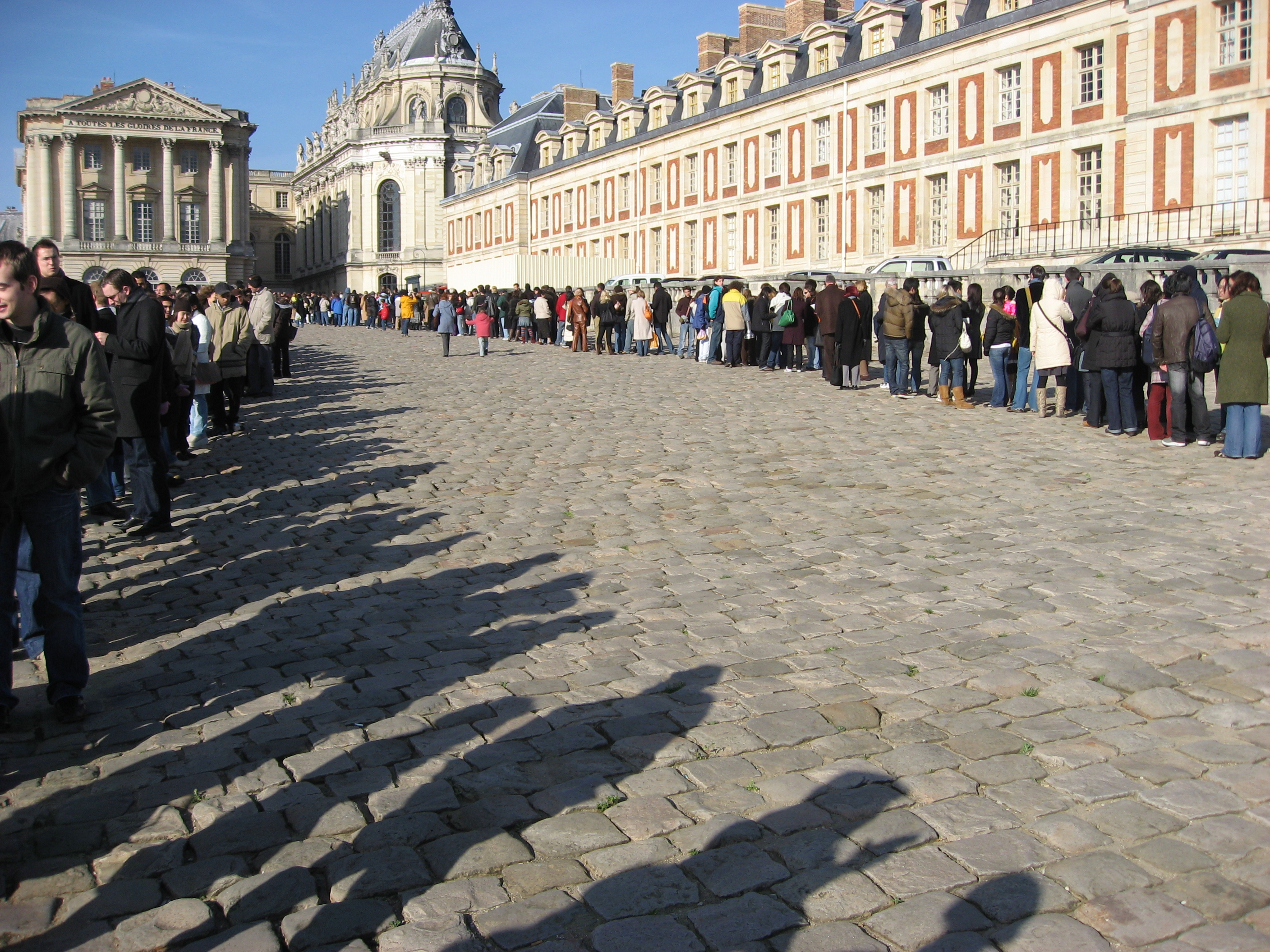 3. תור של מאות (או אלפים) בכניסה לארמונות ורסאי. כל יום ראשון אחרי הראשון לחודש (ז"א פעם בחודש) הכניסה לארמונות ולגינות היא ללא תשלום. אז הלכתי ודילגתי חלק ניכר מאוד מהתור הזה. חבר שלא עקף חיכה בסביבות שעתיים עד שהגיע לכניסה.