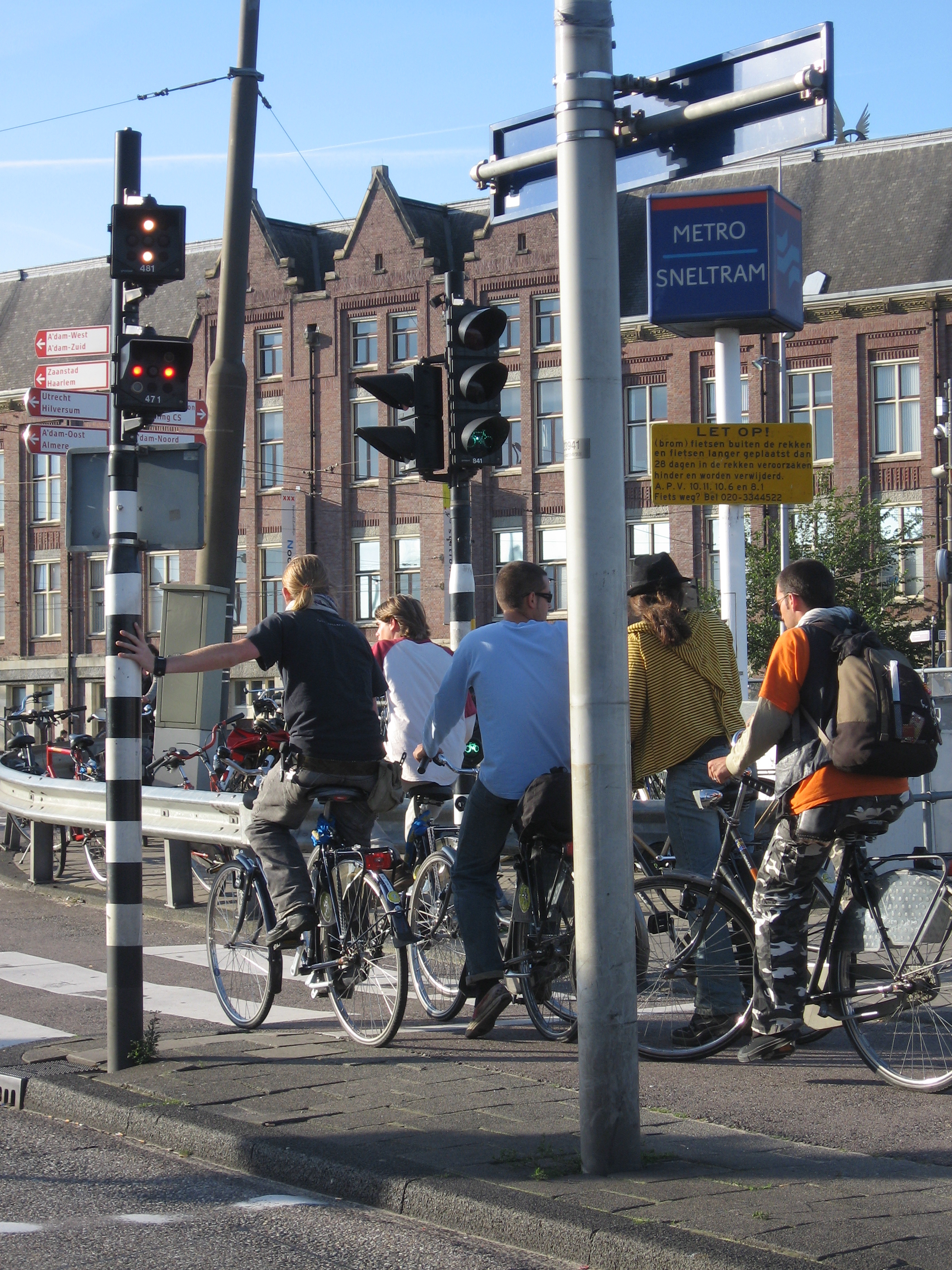2-נוף טיפוסי באמסטרדם, הדרך סלולה לאופניים, עם רמזורים וחוקים משלהם...