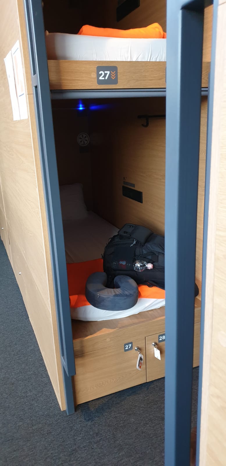 הייתי כל כך עייף ומותש, שכשראיתי אפשרות לשכור תא מנוחה פשוט קפצתי על המציאה. מה עוד, שהיא לא היתה יקרה בכלל (במיוחד לתחושת העייפות הנוראית שהייתי נתון בה) מאה ש"ח לשלוש שעות, כולל אפשרות למקלחת וקליטה אינטרנטית.