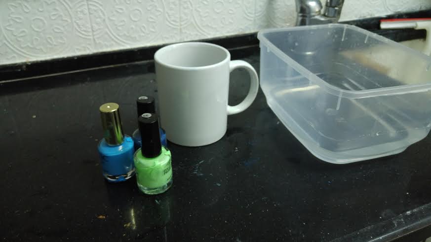 לקערה עם המים החמים מוסיפים טיפות של לק ואחר כך טובלים את הספל.