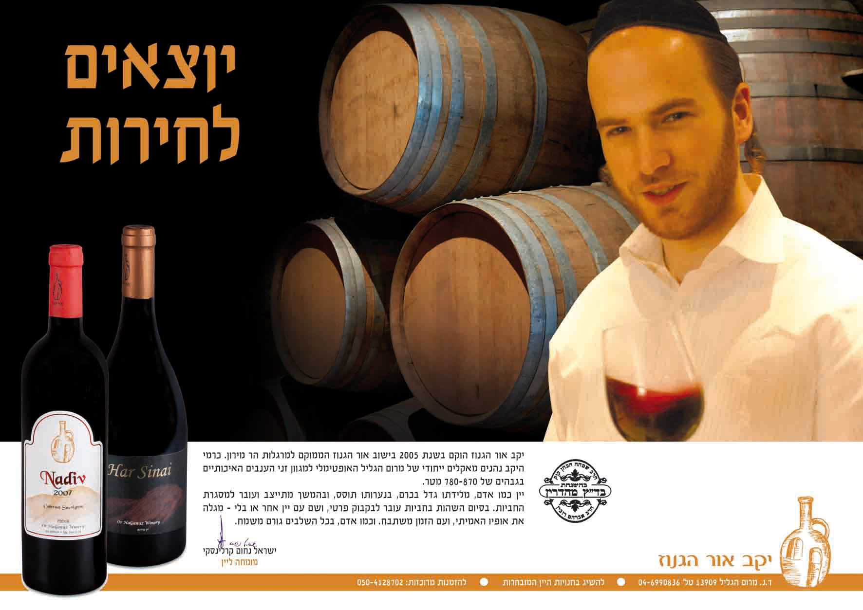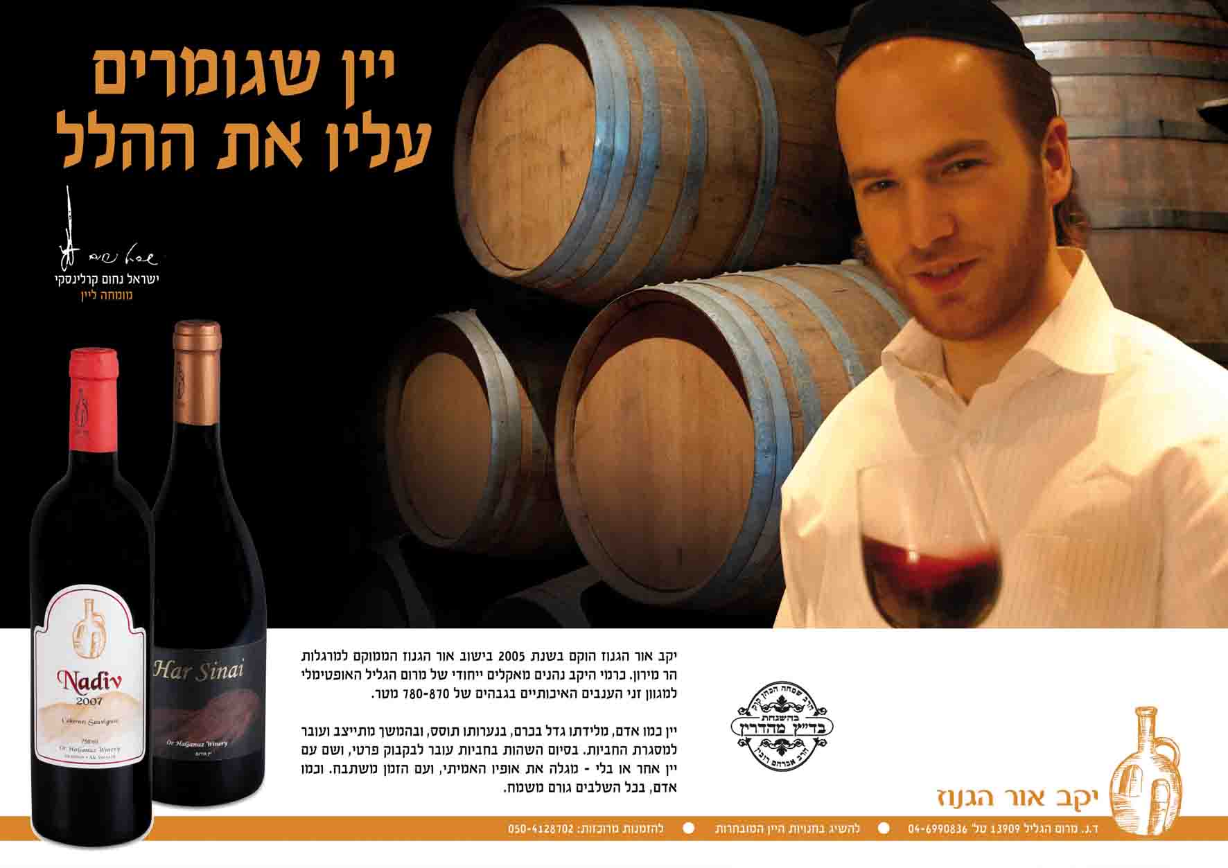 ובכלל יש כאן קצת סתירה בין הסלוגן שמדבר על יין (יחיד) לבין מטרת המודעה לפרסם את יינות (רבים) יקבי אור הגנוז.