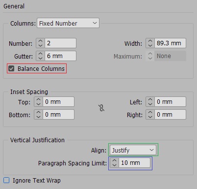 רק הערה קטנה: יש אפשרות להגדיר לאינדיזיין יישור אנכי מלא, עם "איזון טורים", ושלא יגע ברווח שבין השורות, אלא רק בין הקטעים. זה צריך להיות מוגדר כך: