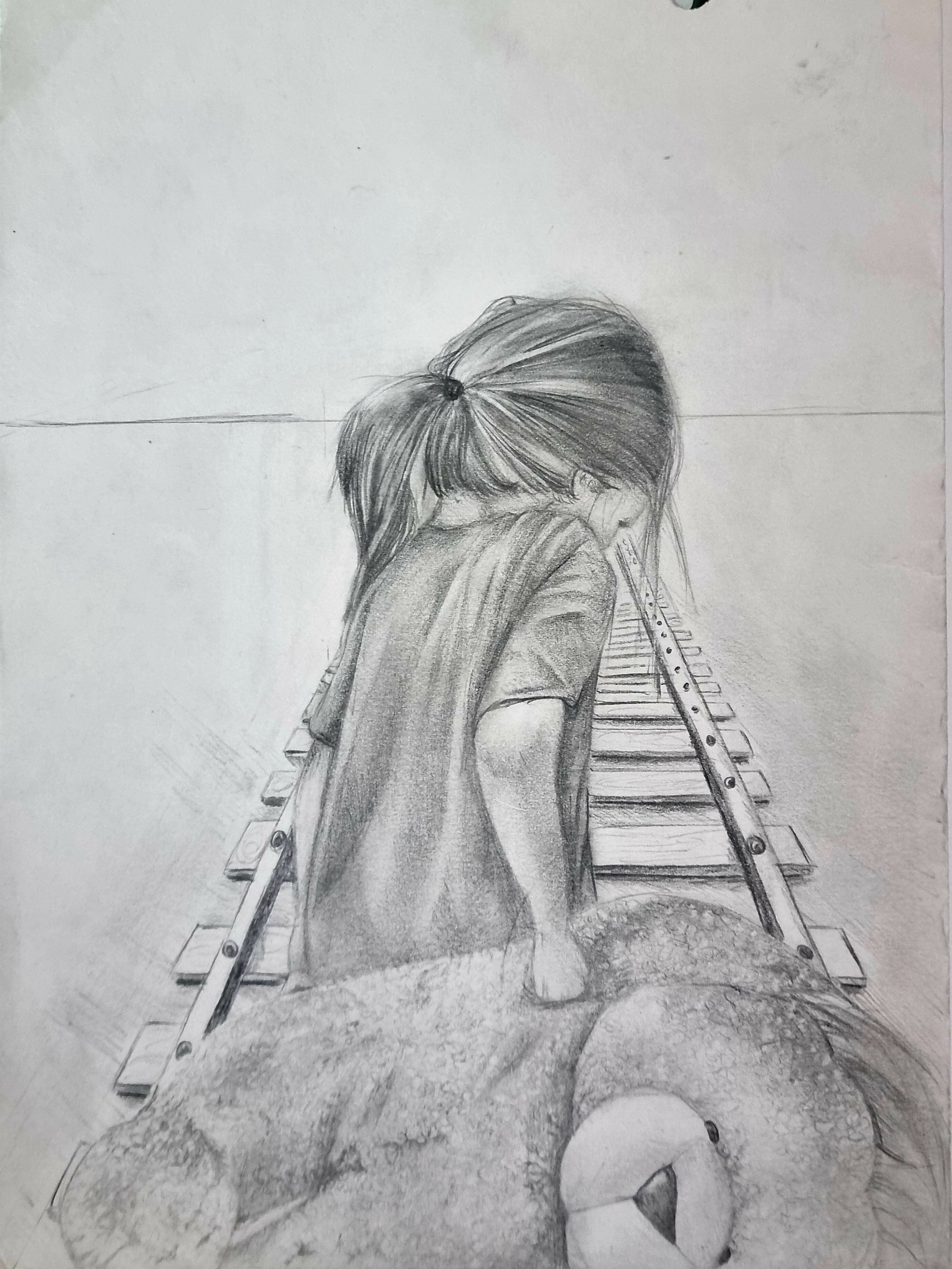 חוו"ד ילדה עם דובי- ציור בעיפרון