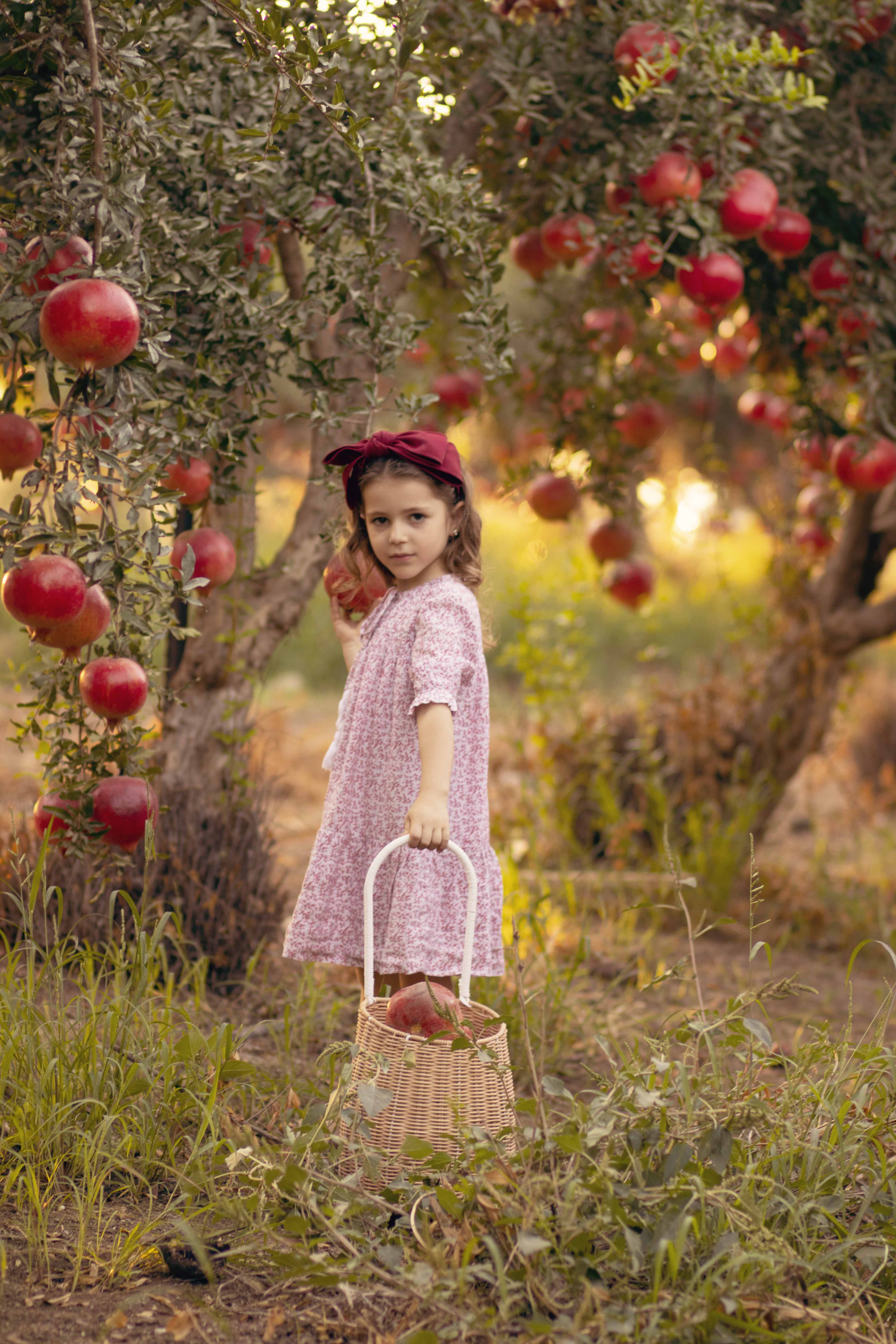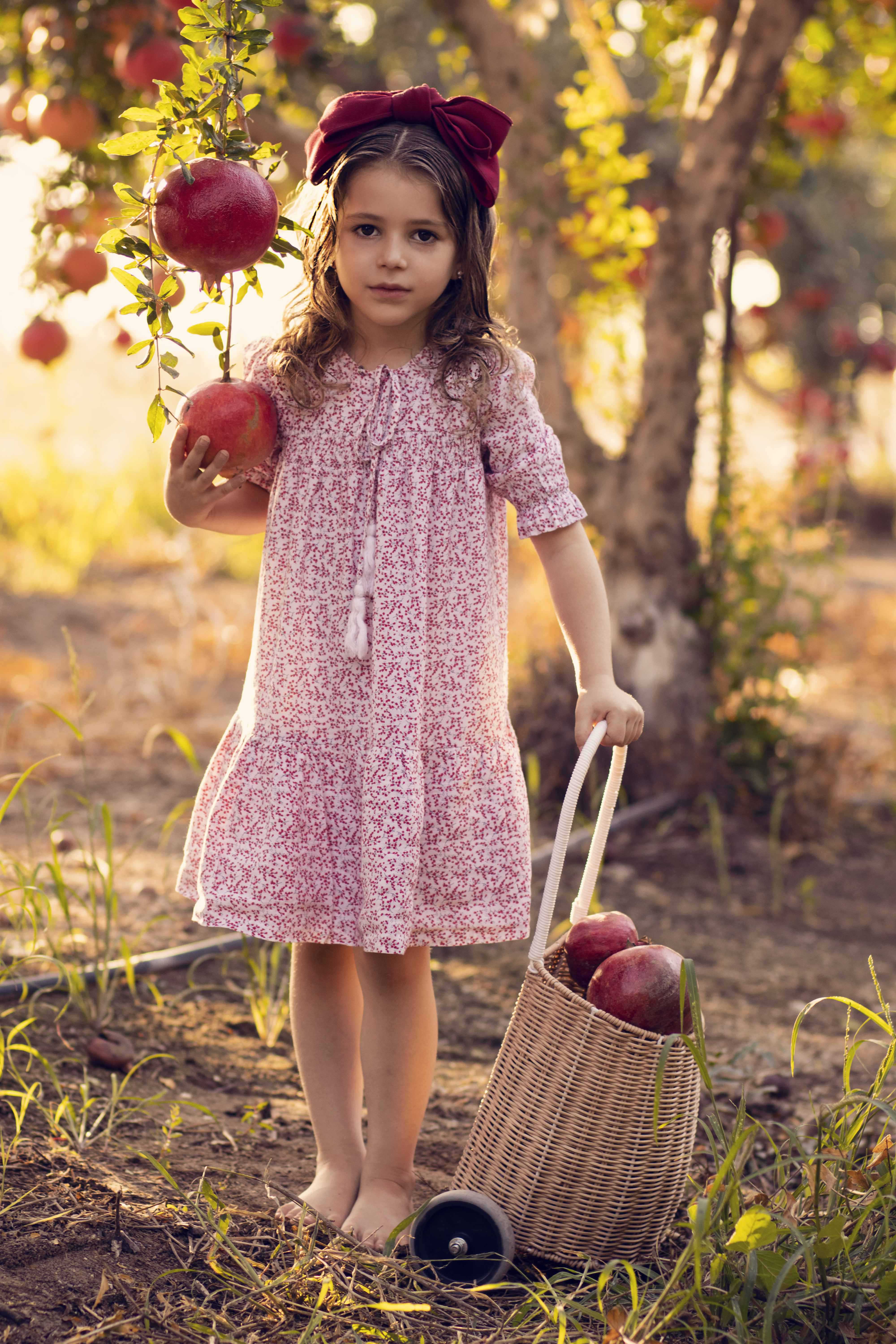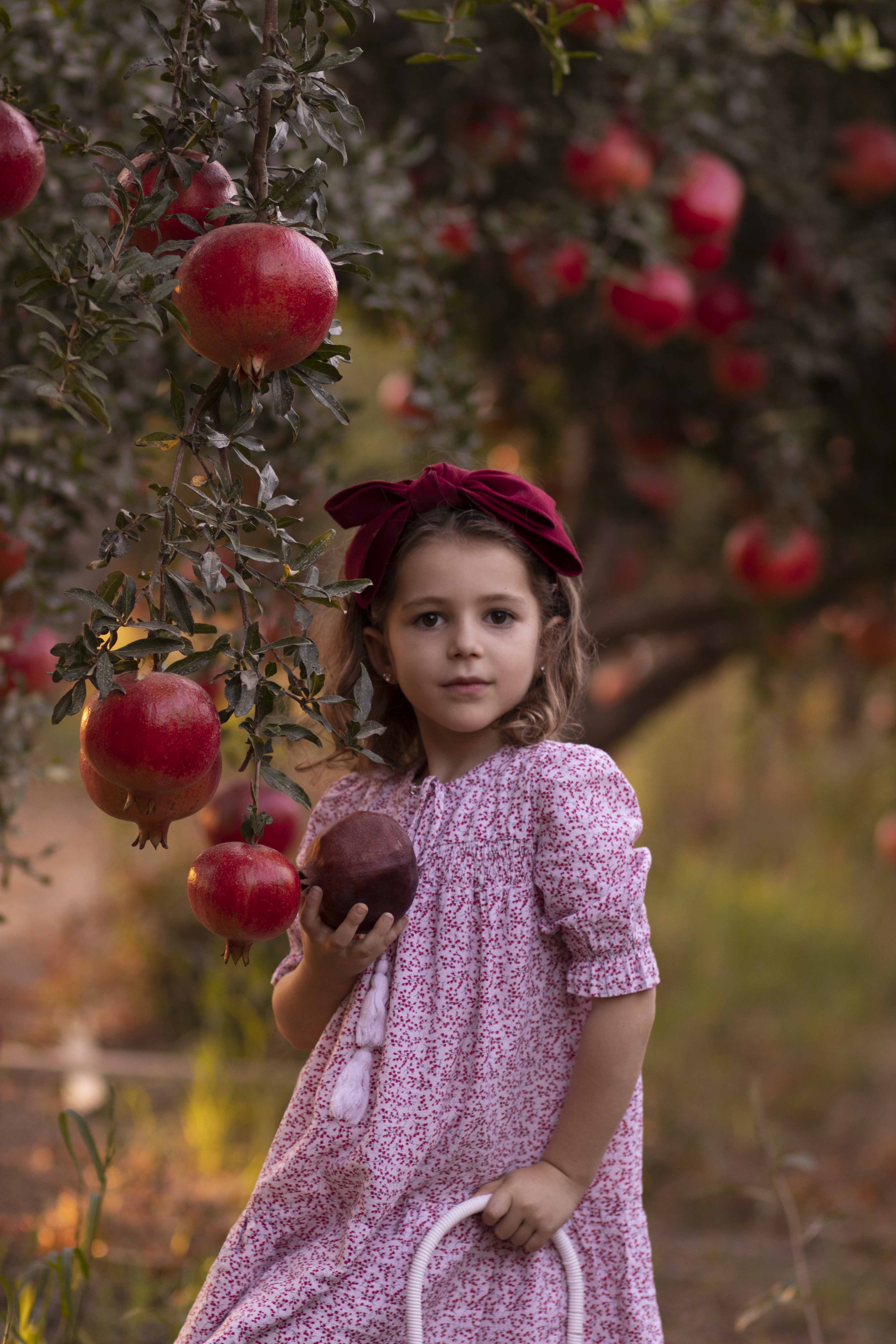 בתמונה הראשונה שימי לב, הפוקוס על הרימונים ופחות על הילדה.
