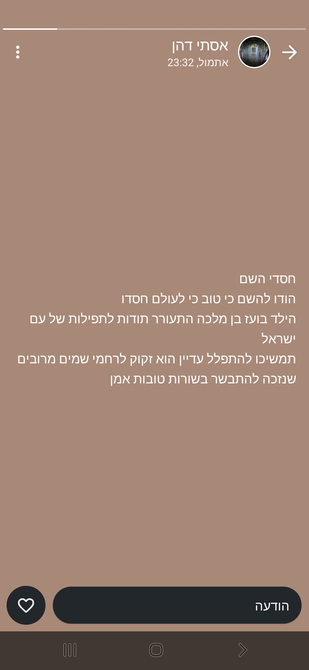 לתשומת לבכם, אשכול זה נועד לבקשות תפילה בלבד. פטפטת ודיונים עלולים לגרום לנעילת האשכול או חסימת המשתמש. בברכת רפואה שלימה!