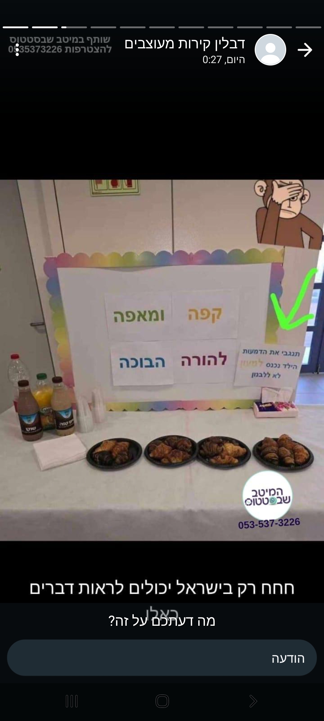 עוד לפני שהספקתי להשיב, קולו של אבא בקע מהאפרכסת. "אני שומע בשורה טובה. נו, ברוך השם. נו, מה מחדשים?"