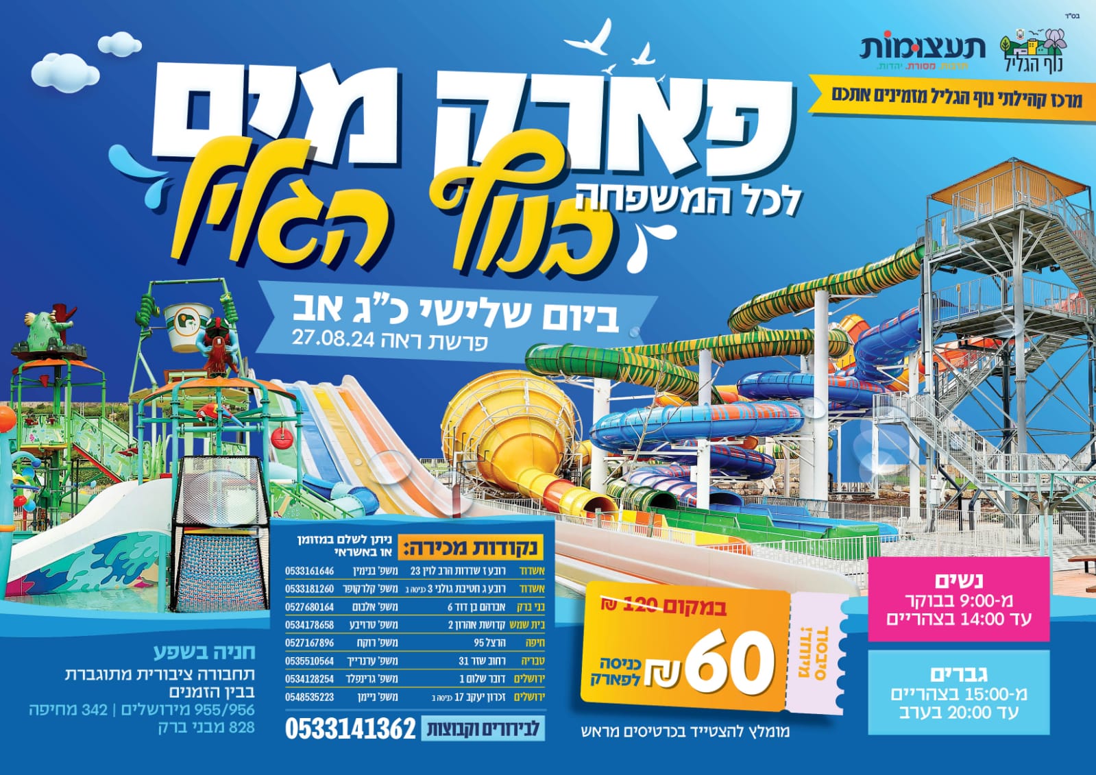 אטרקציה ימים/שעות נפרדות בפארקי מים