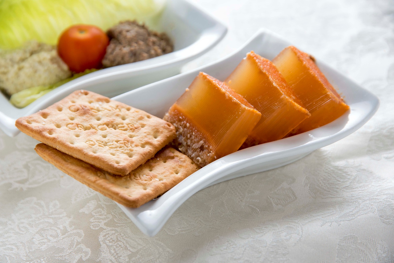אבל תיקח צלחת מלבנית, תשים עיגול של כבד, עיגול של סלט ביצים, ואת הרגל הקרושה, תוסיף עלים ירוקים כל מיני...