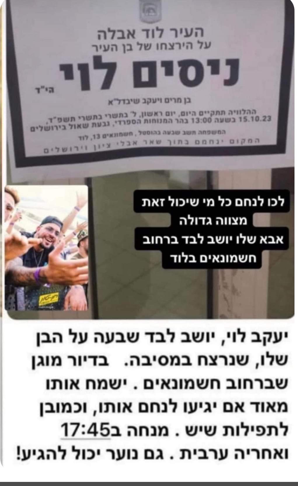 בקשה יעקב לוי יושב שבעה לבד על הבן שלו שנרצח :(