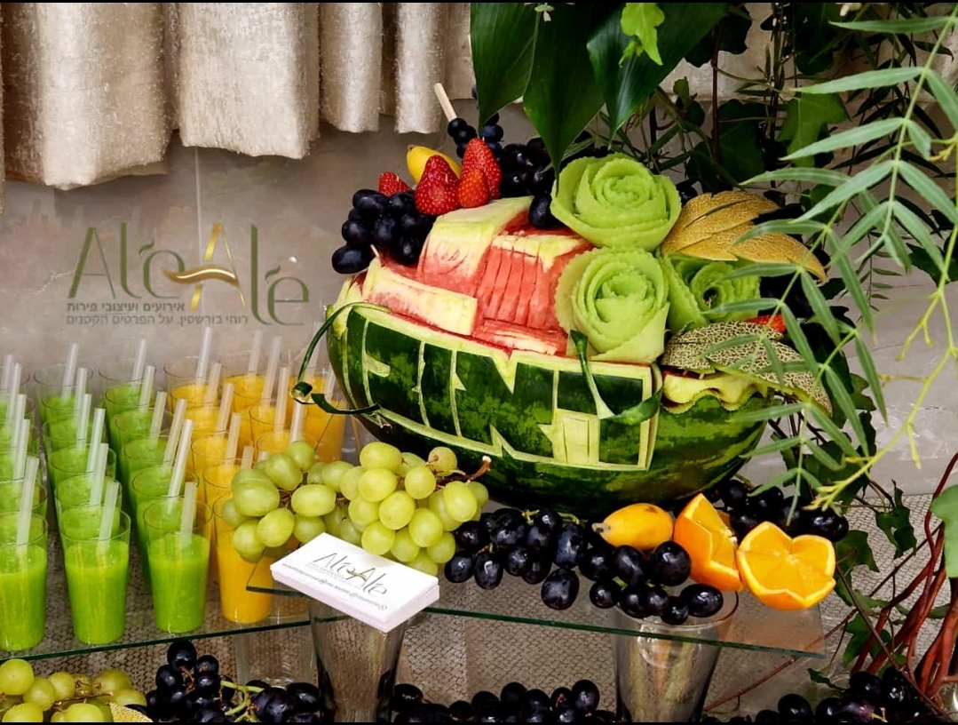 שפע של פירות עם גילוף אבטיח מיוחד,