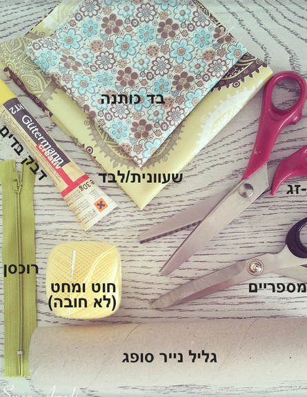 חומרים דרושים: גליל נייר, שעוונית, בד, דבק, מספריים, רוכסן, חוט ומחט.