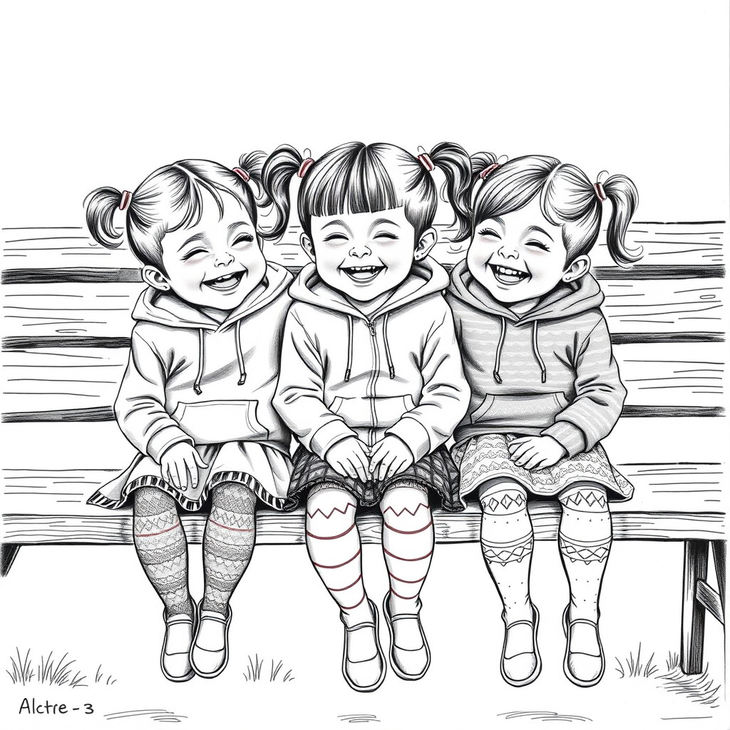 אם אפשר באותו הרוח, תמונה לצביעה של 3 חברות (לא עם תלבושת) יושבות על ספסל בנינוחות וצוחקות או סתם מחייכות? (ספציפית עומד לי בראש תמונה כזו של אסקי, אבל כל רעיון אחר גם טוב)