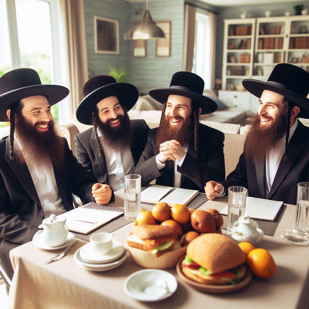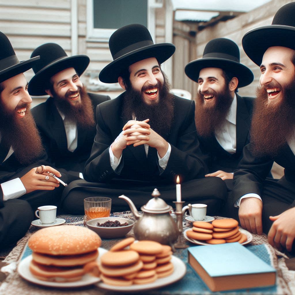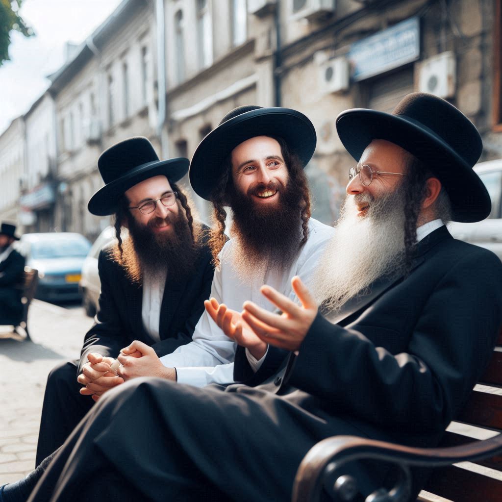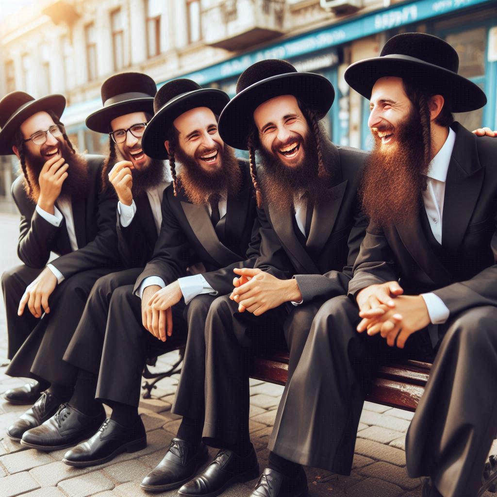 3. חברות אנשים (עדיף חסידיים) יושבים ומדברים עם צחוק.