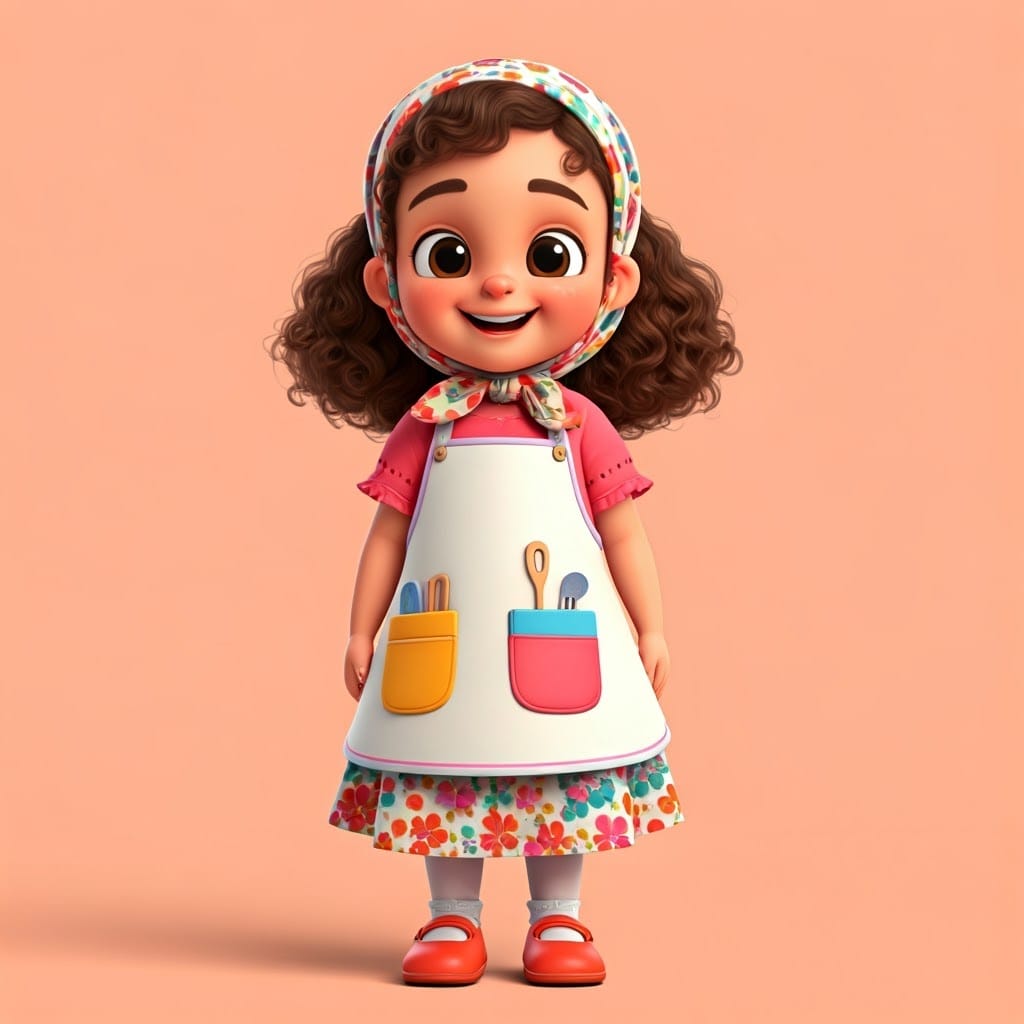 ילדה בת 5 לבושה בתחפושת ציירת, עומדת, חצאית ארוכה צבעונית, גרביים עד מעל הברך, נעליים בצבע לבן...jpg