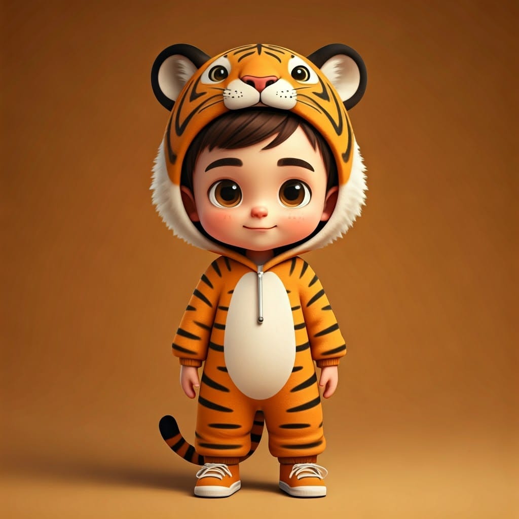 ילד בן 5 לבוש בתחפושת של ינשוף, עומד, נעליים בצבע שחור, רקע לבן. .jpg