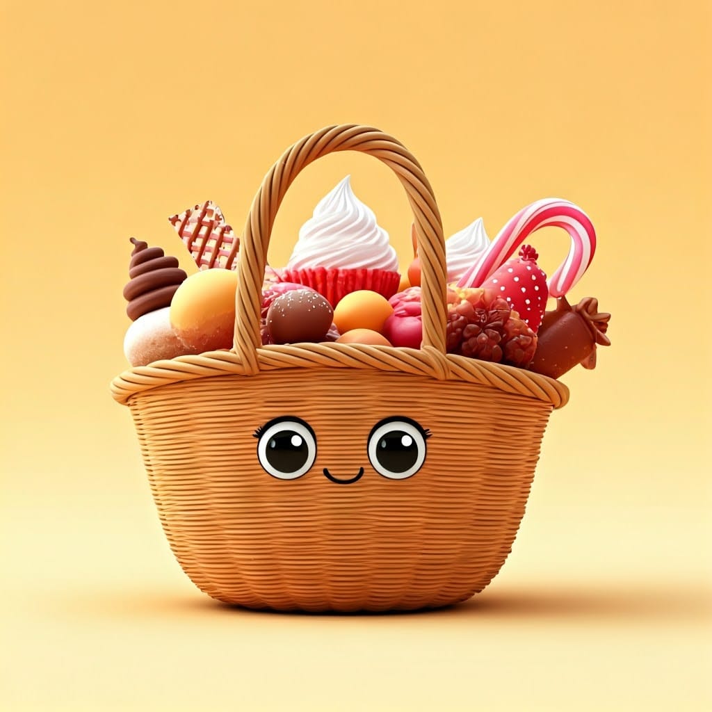 של אביזרי פורים מתוקים, עם עיניים מתוקות ופה מחייך.