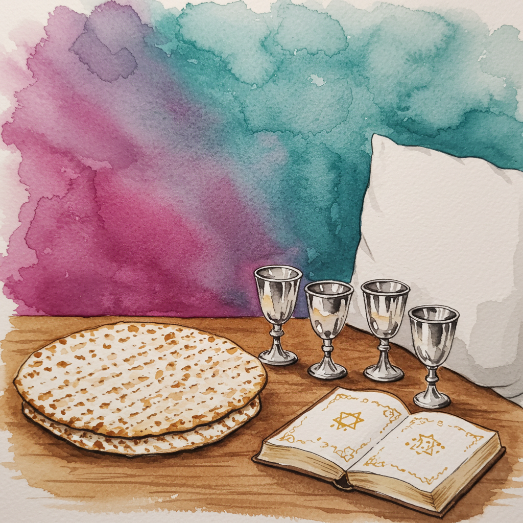 פסח: מצה (עגולה) 4 כוסות. הגדה וכרית