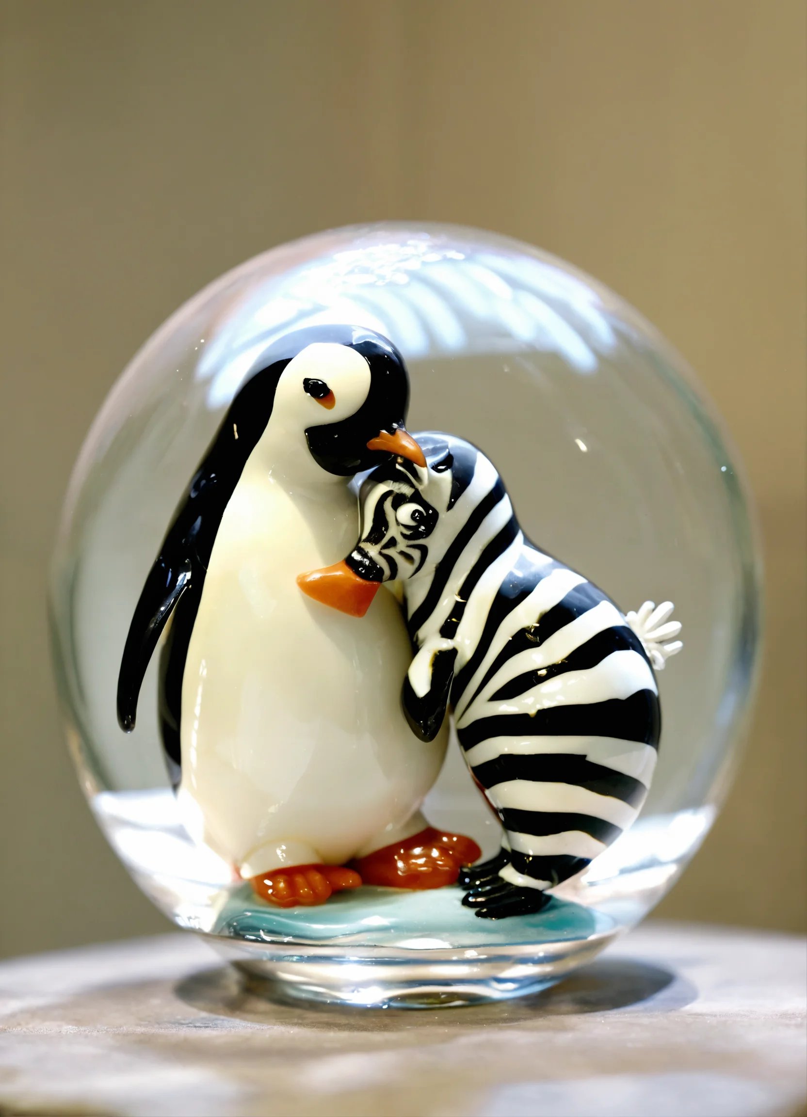 • A glass penguin stands inside a glass ball and hug.jpg