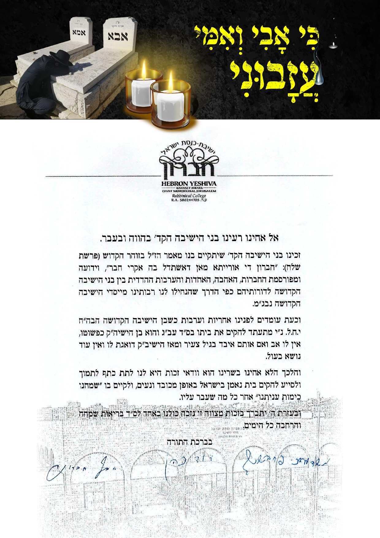 ישיבת חברון מתגייסת למען החתן היתום מאב ומאם