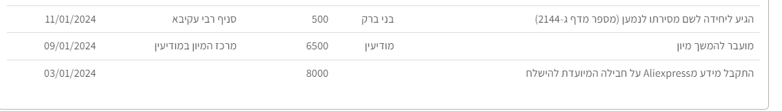באתר של הדואר רשום כשזה מגיע למיון במודיעין