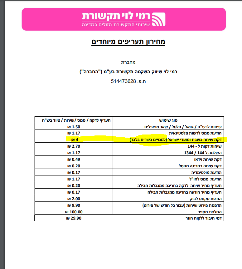 עזרה יש דבר כזה תעריף שיחות בשבת ובמועדי ישראל רמי לוי תקשורת?!