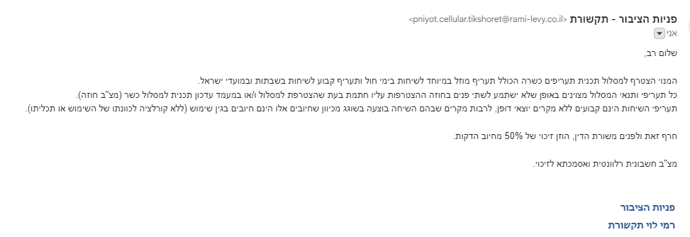 ברצוני לשתף משהו שוודאי יועיל לכולם או לפחות למי שנמצא ברמי לוי תקשורת