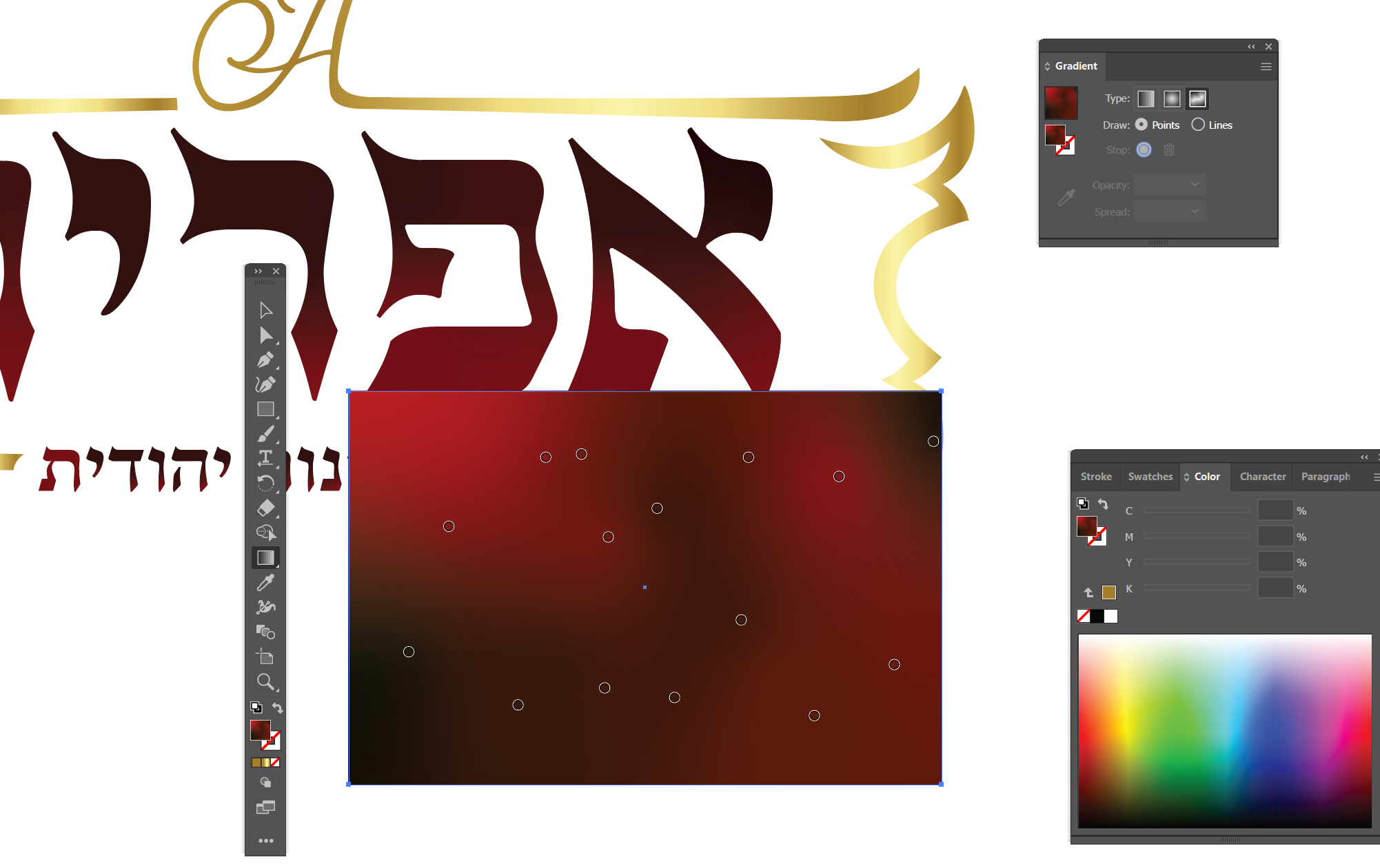 אני רוצה להכניס לאותיות שהפכתי לצורה מעבר צבעים עם נקודות ולא יוצא לי