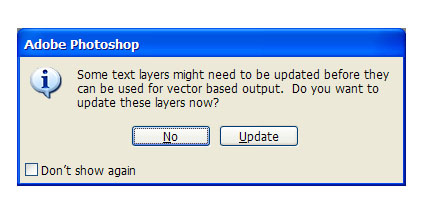 גם אצלי אותה בעיה. אפילו שאני עובדת על אותו מחשב עם אותה גירסה של פוטושופ. פשוט אחרי שאני סוגרת את הקובץ ופותחת שוב מופיעה ההודעה הזו עם אייקון של סימן קריאה צהוב על שכבות המלל.