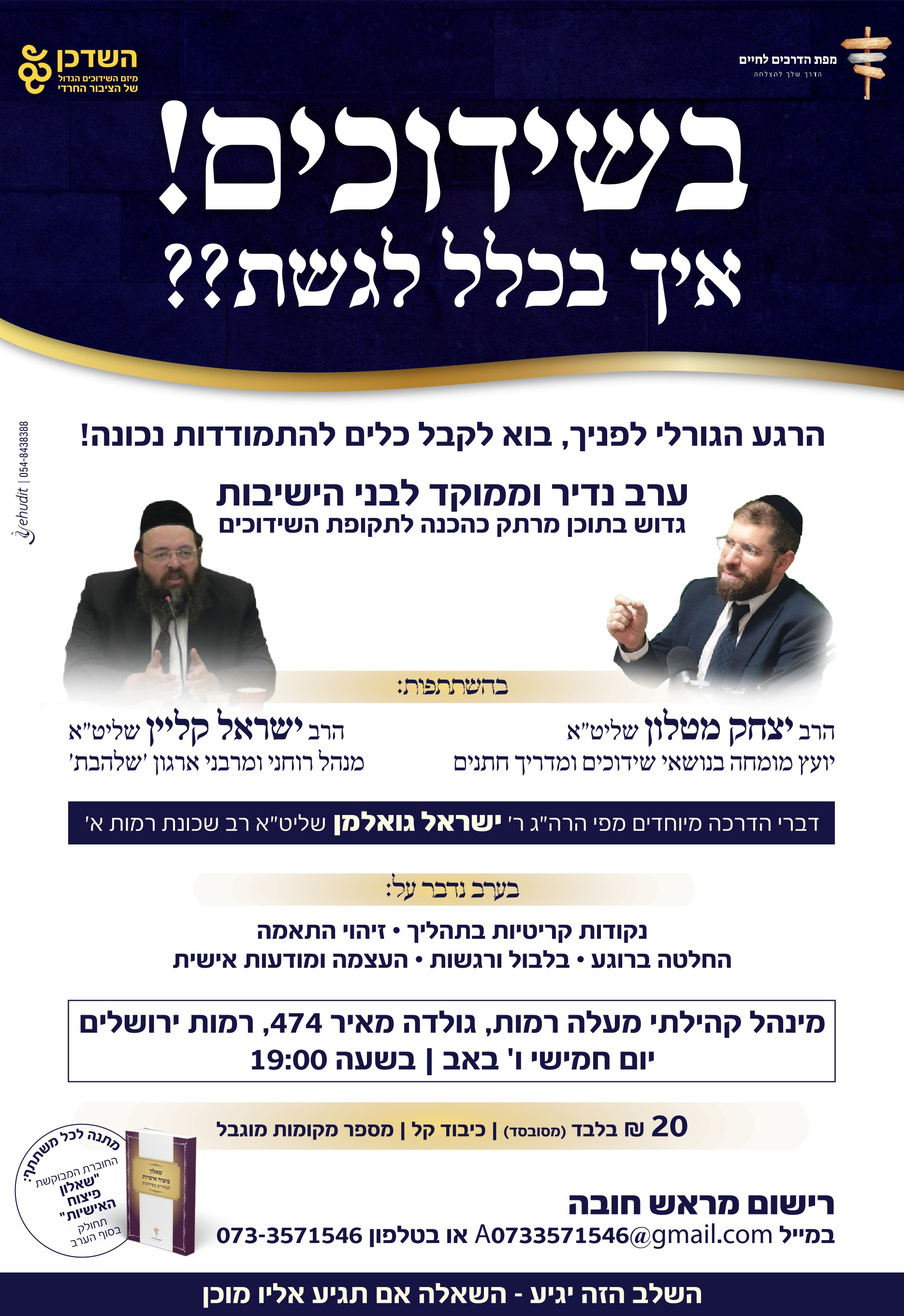 ביום חמישי הקרוב (ו' אב תשפ"ה) יתקיים כנס לבחורים בשידוכים