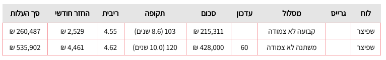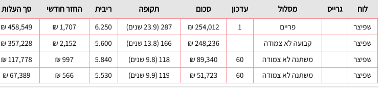 קיבלתי את ההצעה של התמהיל הבא מיועץ משכנתאות: