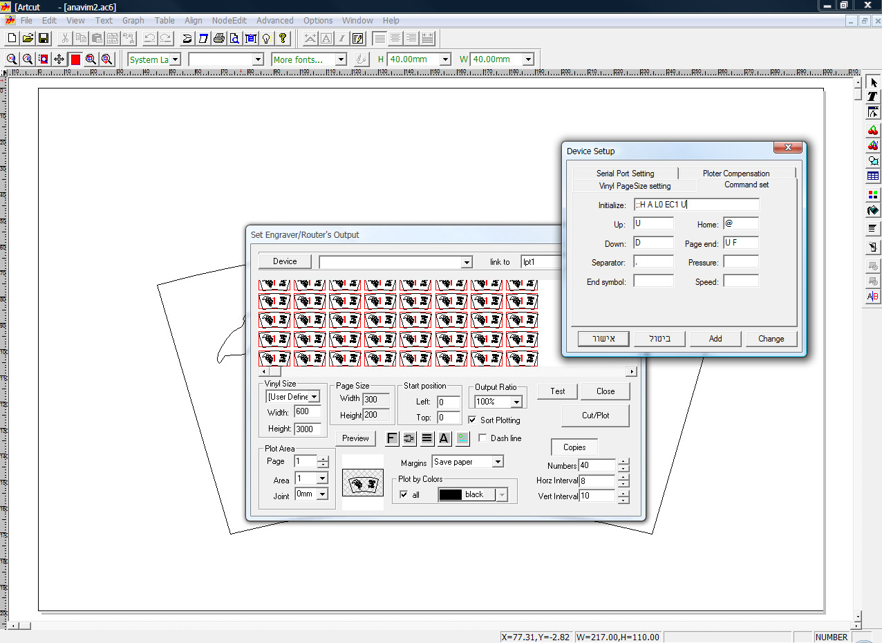 חשבתי שאולי הבעיה ניתנת לפתרון דרך ההגדרות של הArtCut . שם אני רואה שיש כאילו "פקודה" מסוימת שמורה על סוף דף. כנראה שזה מה שמשבש את הפלוטר בסיום העבודה, אני מצרף צילום מסך של ההגדרות. אם למישהו יש מושג בזה, אשמח לעזרה.