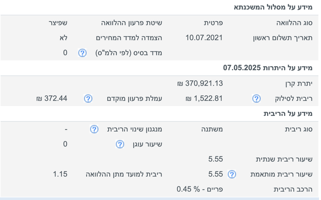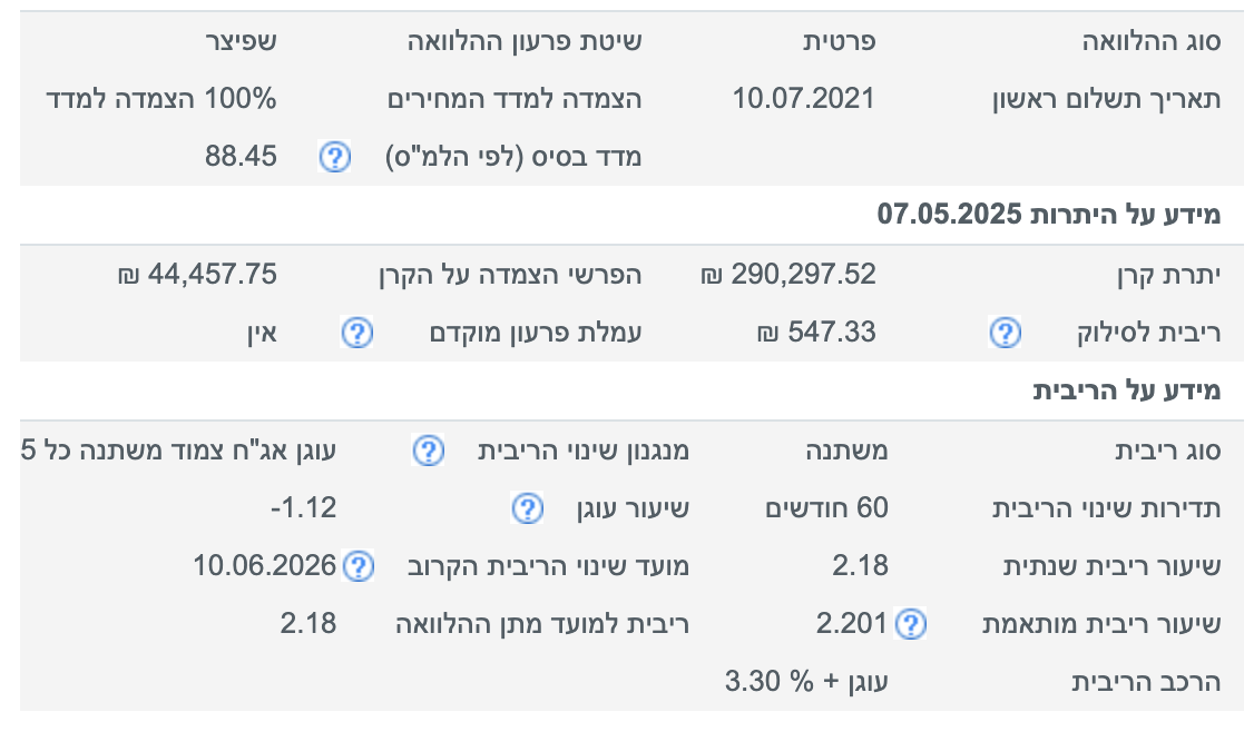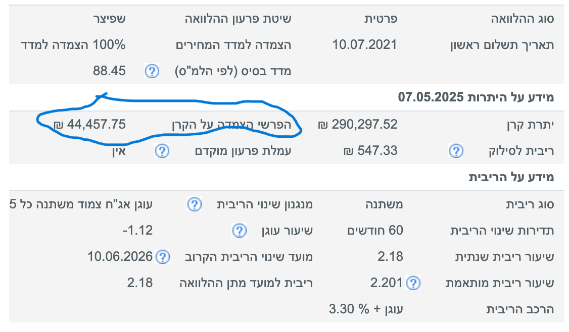 דבר ראשון מיחזור קריטי למלול האחרון, הצמוד מדד אני מצרף לך תמונה ברורה כדאי שתראה כמה אתה משלם על זה מלפני כ4 שנים, ואם לא תמחזר זה ימשיך לעלות, כמובן שאתה ממחזר צמוד מדד המסלול הזה החזר החודשי שלו יעלה ואבל הוא יעלה עכשיו בקצת ואם לא תמחזר בסוף יעלה לך הצמוד מדד גם בחודשי וגם וסף התקופה