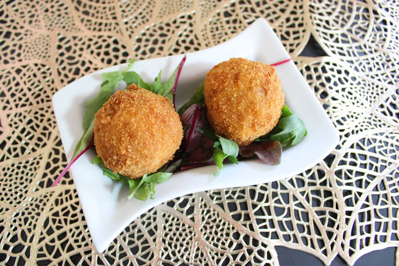 בהגשה מניחים כדור על מצע חסה או עלי בייבי. יוצקים מעט רוטב פטריות. אפשר לנעוץ קיסם דקורטיבי