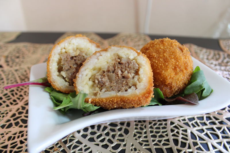 מניחים כדור בשר במרכז האורז ומקפלים את שולי השקית לסגירה של האורז סביב הבשר. מהדקים למעלה את השקית בסיבוב. משחררים ומהדקים את הכדור המצופה באורז כמו קובבה.
