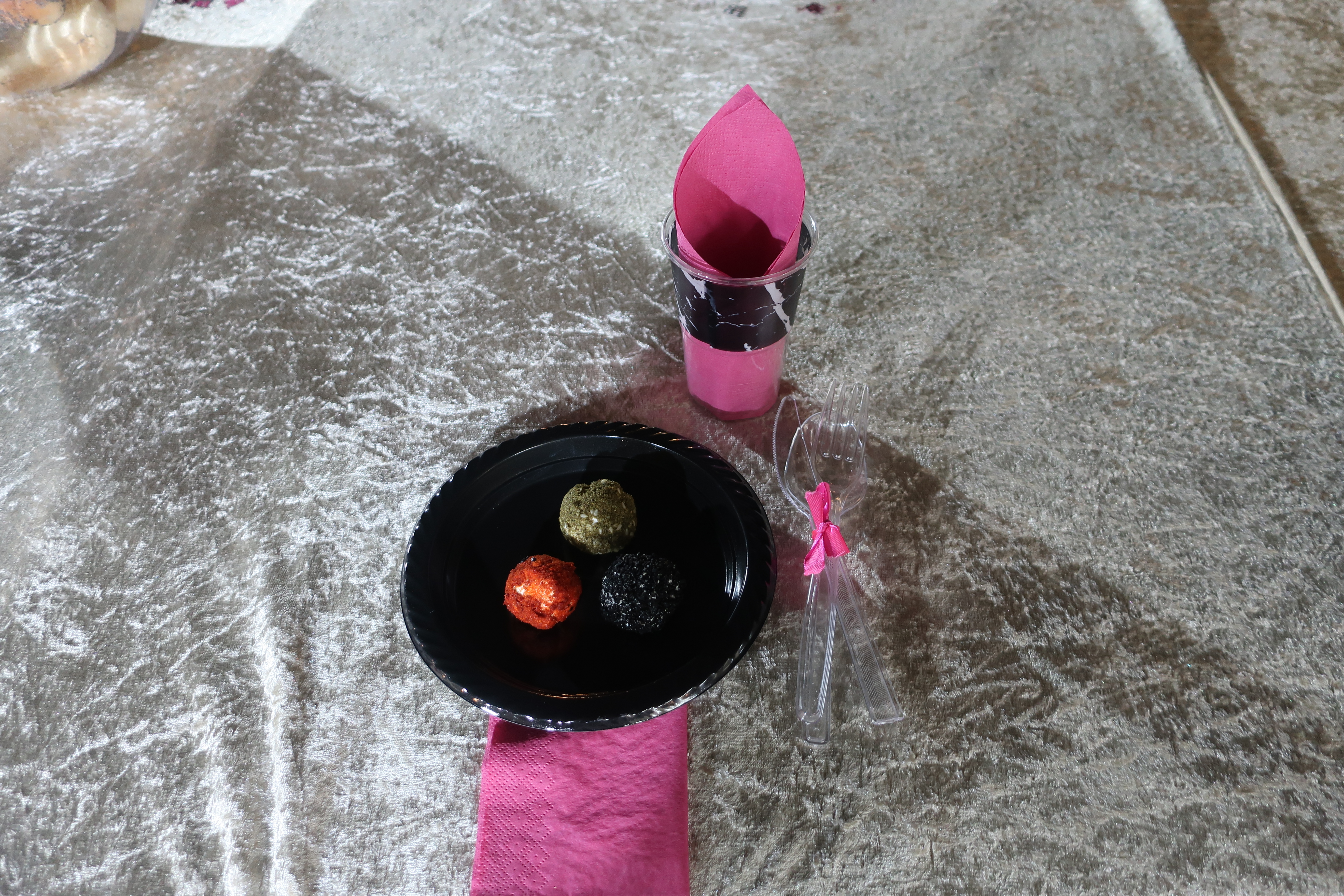אני רוצה 3 כדורים ב3 צבעים מסודרים על צלחת כמנת פתיחה, אני לא אעשה אותם גדולים כמובן, ביסונים קטנים.