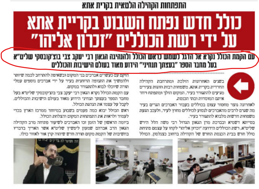 רשת הכוללים “זכרון אליהו” הקימו כולל חדש בקרית אתא. בראשות הכולל יעמוד הגאון רבי יעקב צבי בוצ’קובסקי שליט”א
