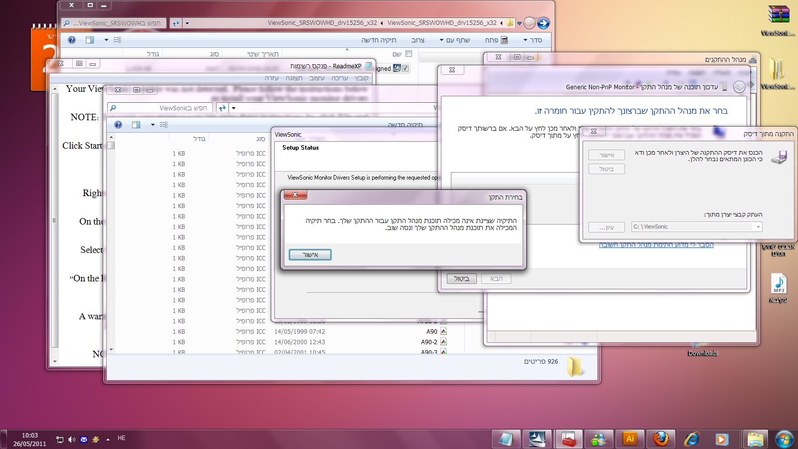 עבדתי לפי זה, אבל התיקיה viewsonic לא נמצאת אצלי במחשב כלל.. אולי צריך קודם להתקין את המסך?